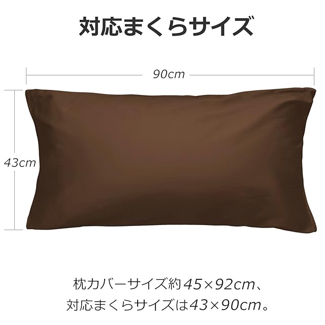 商品名:枕カバー 高級綿100% サテン織り 300本高密度生地 防ダニ 抗菌 防臭 ホテル品質 封筒式 滑らか 柔らかい ピローケース 選べる9色 4サイズ 無地 ブラウン セミロング 43×90cm
