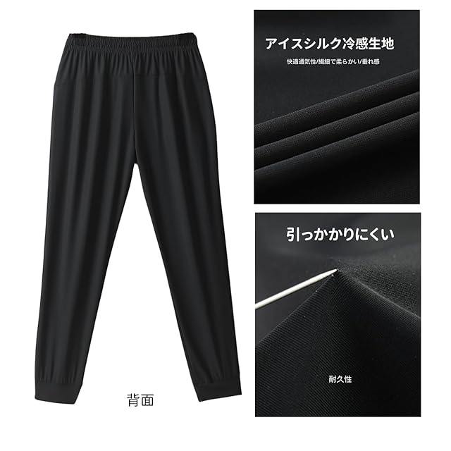 商品名:[xulee] 冷感パンツ 9分丈 メンズ 夏服 アイスシルクパンツ スーパーストレッチ スウェットズボン ジョガーパンツ ズボン スウェットパンツ 薄手 涼感 涼しい 吸水速乾 ボトムス レギパン イージーパンツ エアパンツ エアパンblack-L