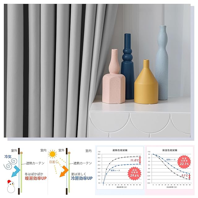 【多種機能】断熱・防寒・防音・家具保護。トリプル織りの遮光生地は、夏の暑さと冬の寒さから断熱することで、室温のバランスを取ります。 厚いドレープカーテンで効果的に騒音を減らせます。家具、床、アートワークを太陽の破壊から保護します。