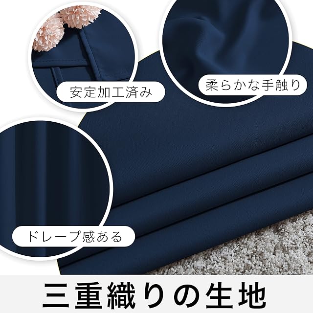 【多種機能】断熱・防寒・防音・家具保護。トリプル織りの遮光生地は、夏の暑さと冬の寒さから断熱することで、室温のバランスを取ります。厚いドレープカーテンで効果的に騒音を減らせます。家具、床、アートワークを太陽の破壊から保護します。