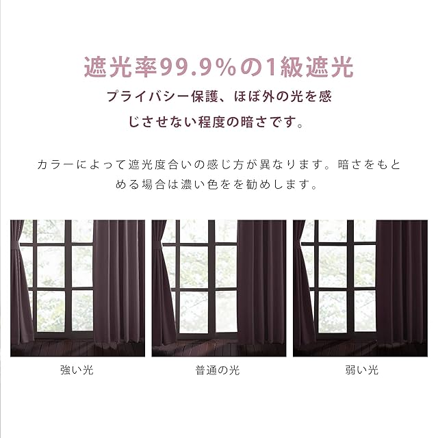 <p>↓↓↓お取扱い上のご注意の点<BR><BR>●入数:2枚遮光カーテン+フック14個+共布タッセル2枚<BR><BR>●機能:三重織りのテクノロジーを利用して85%~99.9%の光を妨げます(暗い色のカーテンの方が遮光効果より良いです)。窓外からの紫外線や強い日差しがよく遮られます。<BR><BR>●洗濯OK:洗濯の際はフックを外して洗濯機に入れて丸洗うことができます。<BR><BR>●組成:ポリエステル100%<BR><BR>●カーテン、スクリーンなどの端部分から光が漏れますのでご了承ください。<BR><BR>●ご注文確定の前にもう一度サイズと色のご確認をお願い致します。<BR><BR>●各商品写真に関してですが、お客様がご覧のモニターやお部屋の環境により、 イメージと異なる場合がございますので、予めご了承ください。