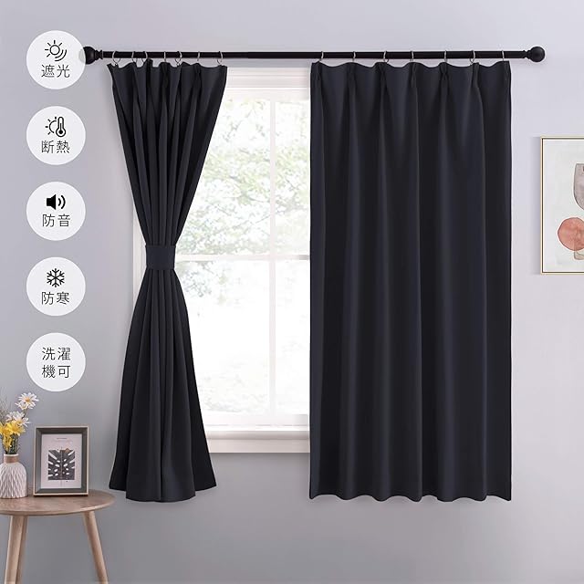 NICETOWN 1級 遮光カーテン 防音 防寒 幅100cm丈135cm ブラック 2枚セット おしゃれ UVカット 昼夜目隠し ドレープ 断熱断冷 省エネ 部屋 寝室 マンション ホーム飾り | BASE LINE