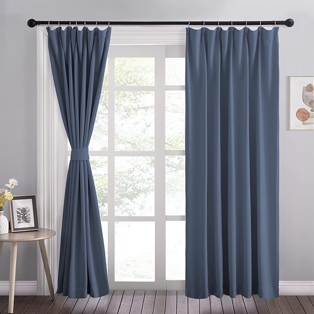 【サイズ】:幅100x丈178cm カラー:ヘイズブルー 材質:厚地、100%ポリエステル パッケージ内容:カーテン2枚+アジャスターフック+カーテンストラップ付属