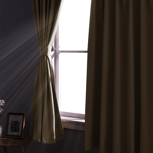 NICETOWN カーテン 遮光 断熱 防寒 幅100cm丈110cm ベージュ 2枚セット 省エネ 冷暖房の効率アップ 防音 カフェーカーテン 出窓 腰窓 部屋 寝室 幼児園 喫茶店 | BASE LINE