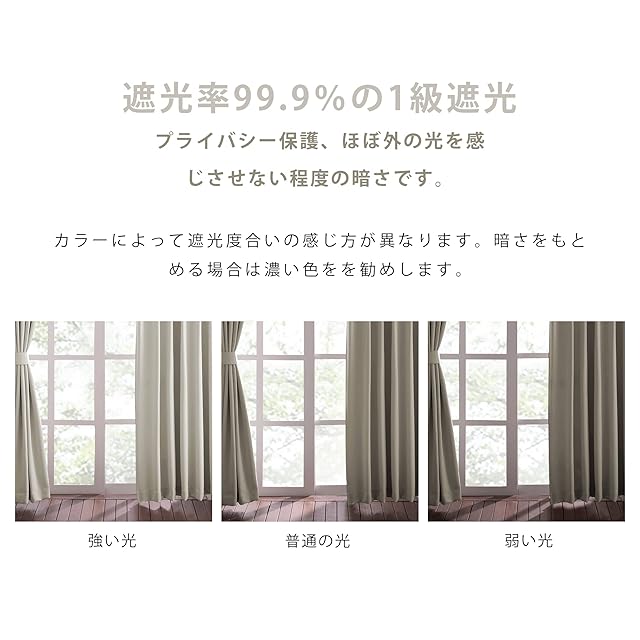 【1級遮光】光と紫外線の85%-99.9%を妨げます。革新的なトリプルウィーブテクノロジーにより、日光を遮ったり、昼寝をしたり、テレビから太陽のまぶしさを抑えたりしたい人にぴったりです。※色が濃いほど、シェーディング効果が高くなります。