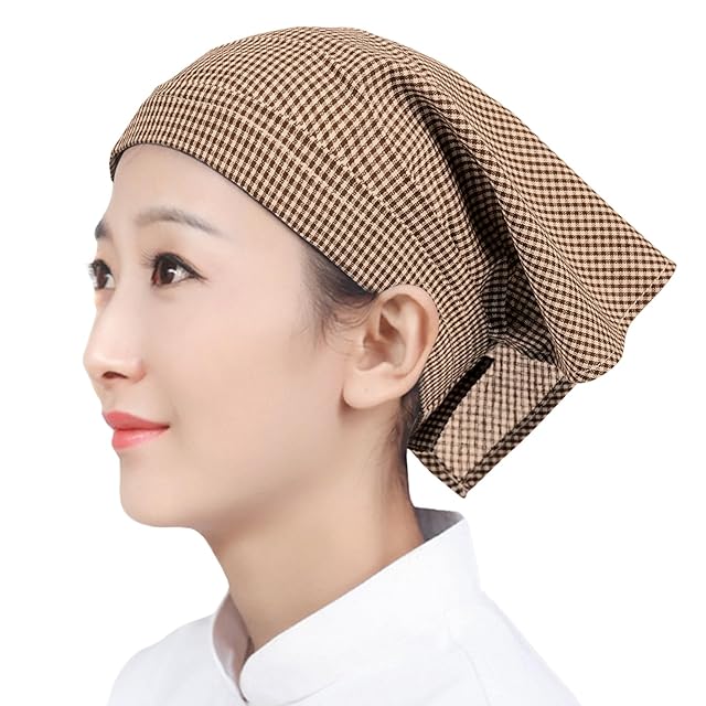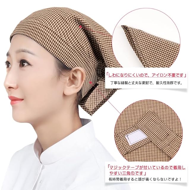 [OTAKUMARKET] 三角巾 シンプル 無地 大人用 男女兼用 カフェ 業務用 料理教室 調理実習 清掃 美容院 マジックテープ付き 簡単に取り付ける (1, ブラウン×カーキー ギンガム) | BASE LINE