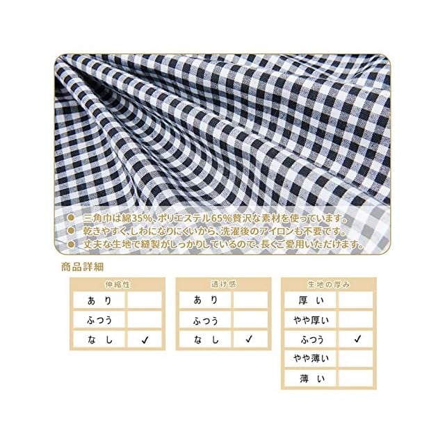 しっかり生地とこだわり縫製:丁寧な縫製と丈夫な素材で、耐久性抜群です。料理用、給食用、調理用三角巾/バンダナとして長くご愛用いただけます
