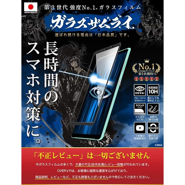 ガラスザムライ Xperia 10 Ⅱ 用 ガラスフィルム SOV43 用 SO-41A 用 ブルーライトカット 全面保護 黒縁 硬度10H らくらくクリップ付き 263-blue-3d-bk | BASE LINE