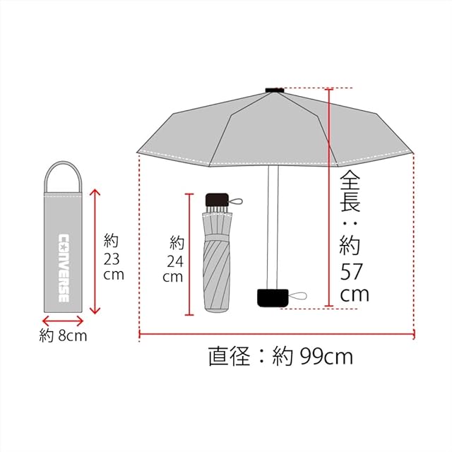 商品名:小川(Ogawa) コンバース キッズ折りたたみ傘 手開き 55cm 6本骨 CONVERSE ブラック 無地 ワンポイントロゴ 抗菌手元 はっ水 20285