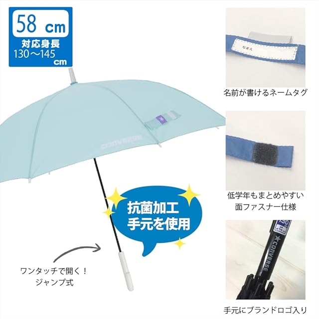商品名:小川(Ogawa) コンバース キッズ長傘 ジャンプ式 58cm 8本骨 CONVERSE ミント 無地 ワンポイントロゴ 抗菌手元 はっ水 20283
