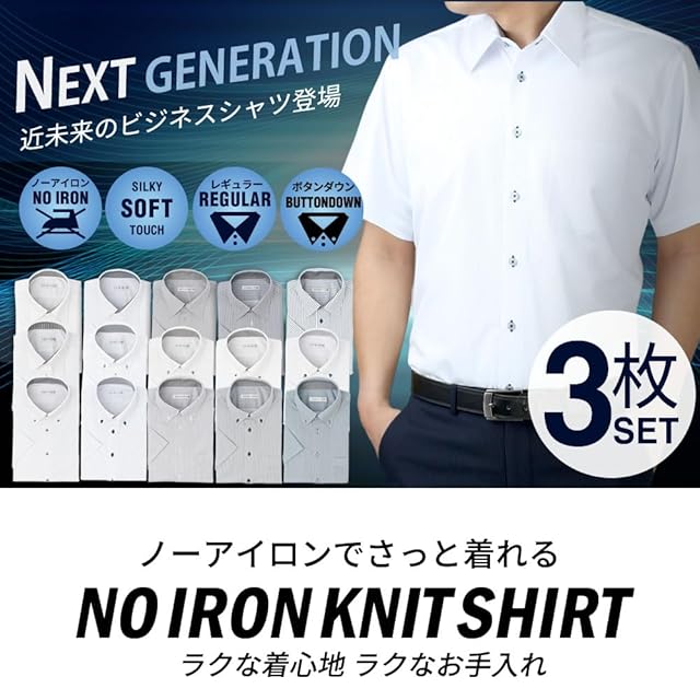 近未来ビジネスシャツ!ノーアイロン時短ニット