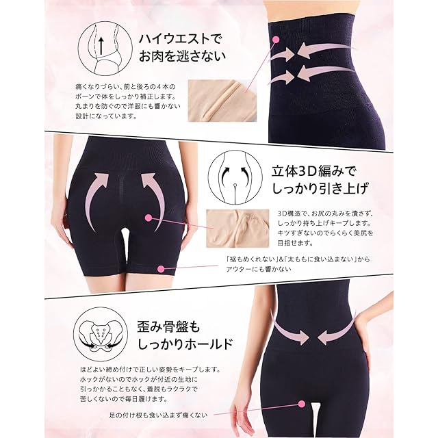 立体3D構造で、お尻の丸みを潰さず持ち上げキープ。骨盤歪み もしっかりホールド。キツすぎないのでらくらく 美尻 を目指せます。