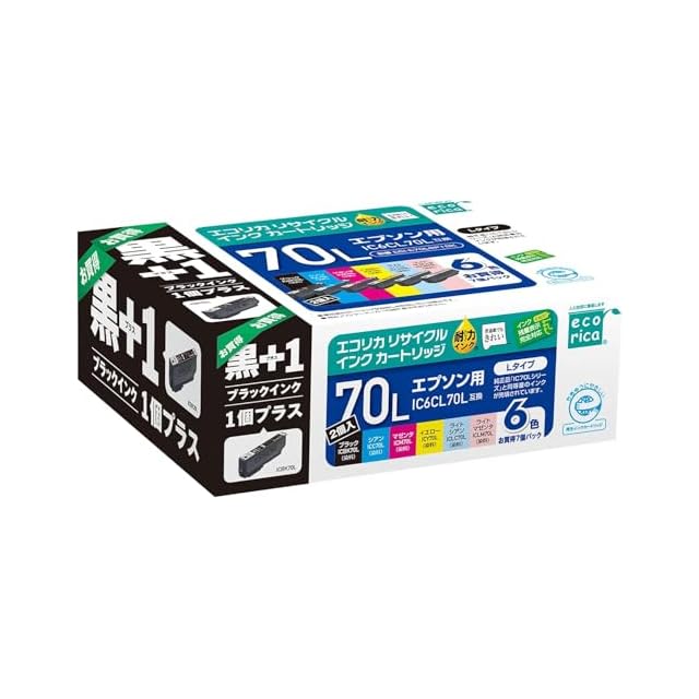 商品名:エコリカ エプソン IC6CL70L+ブラック さくらんぼ対応リサイクルインク 6色パック+ブラック EC-IC6CL70L+BK 残量表示対応【エコリカ封筒パッケージ】