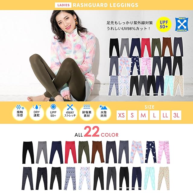 商品名:FELLOW フェロー 全22色 レディース ラッシュレギンス ラッシュガード レギンス スパッツ 全6サイズ UVカット UPF50 + プール 紫外線カット フェザーホワイト LLサイズ