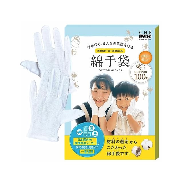 使い捨て手袋ですが、洗濯や清潔に保ちますと繰り返しご利用いただけます。また、吸水性や伸縮性にも優れ、優しく手を守ります。手荒れやアトピー、品質管理用など多用途でご利用いただけます。 おサイズについて、中指の長さと手のひら周りを計測の上ご選択ください。全長は個体差がございますので、サイズ表より多少長い場合がございます。 製造過程でついてしまった軽微な難がある可能性がございます。真っ白な商品の為、取扱いが難しく、ご理解頂ける方のみご購入下さい。検品済み商品で入荷するため、当店で検品は行っておりませんので、予めご了承ください。万が一、ご使用に問題がある難がある場合は、お問い合わせ頂ければ交換のご対応をさせて頂きます。 ●アレルギー反応などにより、体質によってはかゆみ、かぶれ、発疹などを起こす可能性があります。異常を感じたら使用を中止し、医師にご相談ください。 ●高温での乾燥や直接、アイロンをかけるのは避けてください。 ●熱いものに触れないでください。火傷をする恐れがあります。 ●こまめに洗濯し、常に清潔な状態でご利用ください。 ●色落ち、色移りを避けるため、他のものと一緒に洗わないでください。 ●保管するときには直射日光を避けてください。 こちらのご紹介は、医療品メーカーが誇る綿素材の手袋です。 お肌の敏感な方やアトピーの方には、アトピー手袋や敏感肌用手袋、低刺激手袋がオススメです。綿100%なので、デリケートな肌の方にもやさしく、掻きむしりを抑えるための掻きむしり手袋としてもご利用いただけます。また、コットン手袋の素材は、柔らかいので、日常的な、手荒れ手袋としてもその効果を発揮します。保湿剤や、お薬の上からカバーのように使って頂くのがお勧めです。長時間のゴム手袋の使用が必要な場面では、ゴム手袋インナーやゴム手袋用インナーとして、インナーとして手袋を併用することができます。 運転時の紫外線対策や寒さからの保護として、ドライブ手袋や運転手袋として。べたつき防止に、日焼け止め手袋としても。夜の保湿ケアとしてナイト手袋や寝るときの手袋、そして保湿手袋としてお使いいただくことで、外気から守りお手元をしっとりと保つことができます。 日常生活での使用には、家事用手袋、園芸用手袋のインナー、そして作業を行う際の作業用手袋、商品の検品作業のための検品用手袋に。医療現場や介護現場、サービス業での使用には、医療用手袋、介護用手袋、そしてサービス業用手袋としてご利用頂けます。 また、特別なシーンや趣味の活動には、フォーマル用手袋、礼装用手袋、コスプレ用手袋、撮影用手袋、演劇用手袋、そしてダンス用手袋に。 この手袋は、高品質手袋としてその品質を保ちつつ、繰り返し使用しても洗える手袋として清潔に保てる点が魅力です。一方で、必要に応じて使い捨て手袋としても利用することができます。コットン素材なので通気性がよい手袋として、長時間の使用でもムレにくく、フィット感抜群手袋として快適な装着感を実現します。