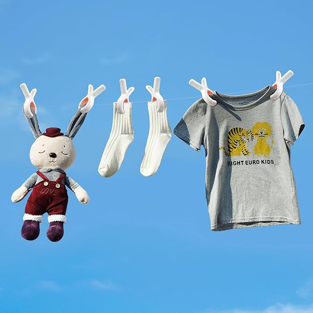 【強力クリップ】クリップの内側には、シリコンの滑り止めマットが取り付けられており、滑り止めだけでなく、服を挟んでも跡が残らない。大きな開口部とスプリングの設計により、強力なクランプ力が得られ、強風に吹かれたり、激しく振られたりしても、乾燥する衣類が脱落しません。
