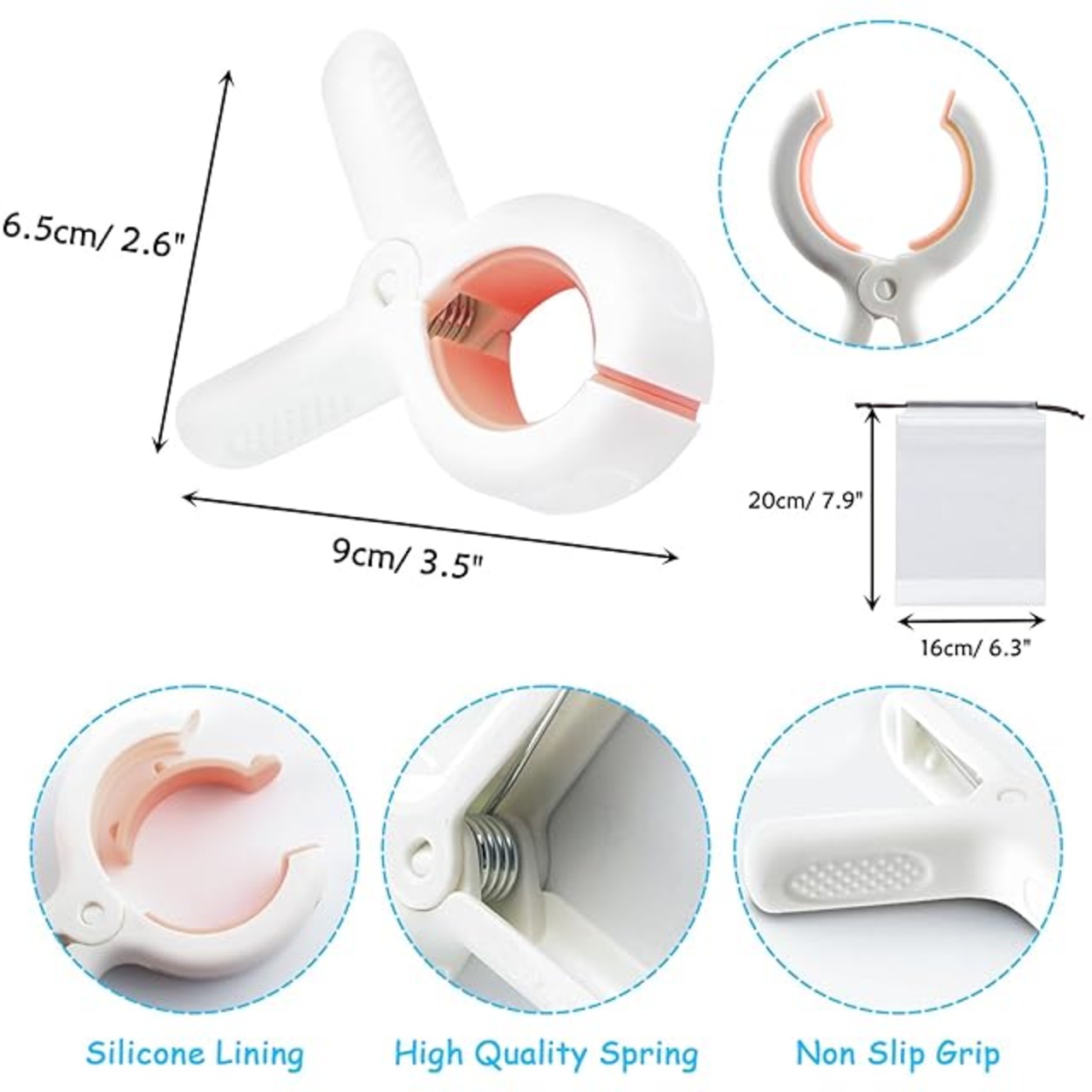 【強力洗濯バサミ】クリップ開口部:5CM、長さ9.5CM、幅6.5CM。(サイズが多少の誤差がある可能性もあり 、予めご了承くださいませ。)高品質の厚みのあるPP素材でできており、内部にTPR滑り止めパッドがあり、耐用年数が長く、壊れにくく、ピンチマークがなく、衣服を傷つけません。