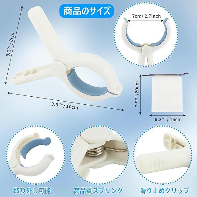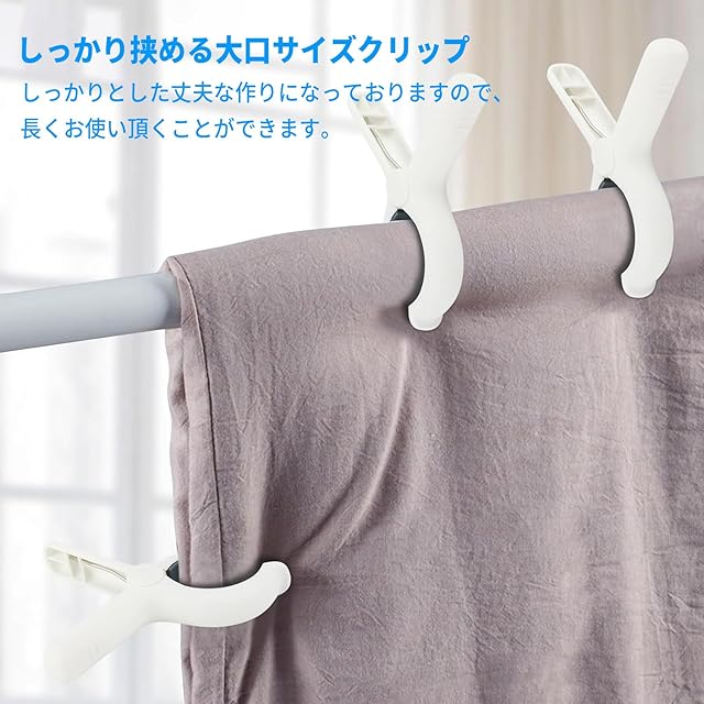 【クリップ 大型】寝具、シーツ、カーテン、衣類のグリップに。布団、シーツ、寝具、カーテン、衣類を挟むために使われます。太陽椅子、プール椅子などにタオルを挟むのにとても便利でおすすめです。