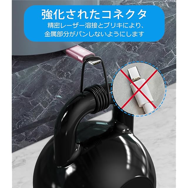 【耐久性】:ナイロンファイバー被覆構造で15000回以上の曲げ試験に合格し、一般的なUSBケーブルより寿命を4倍以上に向上する高耐久Type C ケーブル 充電ケーブルです。しかも接続口に金メッキ加工されて、時間の使用による信号劣化など心配する必要がなくて、耐食性、耐久性に優れています。