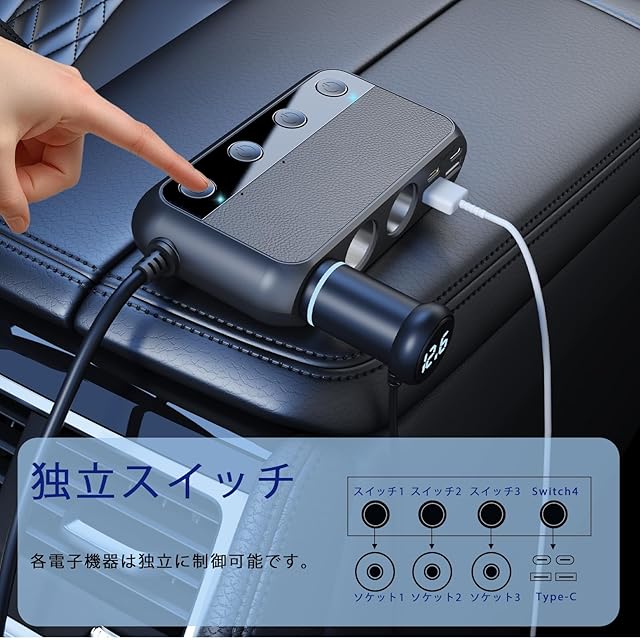 使いやすいオン/オフスイッチ: 各USBポートには独立したオン/オフスイッチがあり、デバイスを他に影響を与えずに自在に制御できます。さらに、LED電圧表示モニターが車のバッテリー電圧をリアルタイムでチェックします。