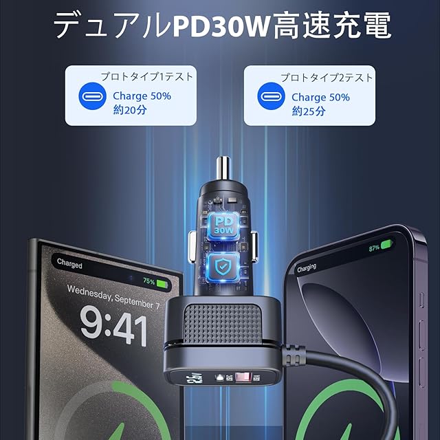 安全かつ堅牢な設計: 本製品には内蔵の交換可能なヒューズがあり、過電流や過電圧を防ぎ、ショート回路からデバイスを守ります。安全に充電しながら、あなたの大切なデバイスを保護します。