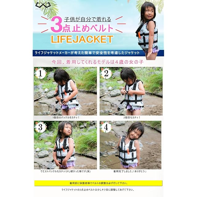 このレジャーベストは各ベルトが調整可能になっております。その為、成長の早いお子様のサイズに沿って調整する事が可能となっております。身長:94-145cm 胸囲:48-80cmまでを想定して設計しておりますので範囲内の方の着用をお願い致します。