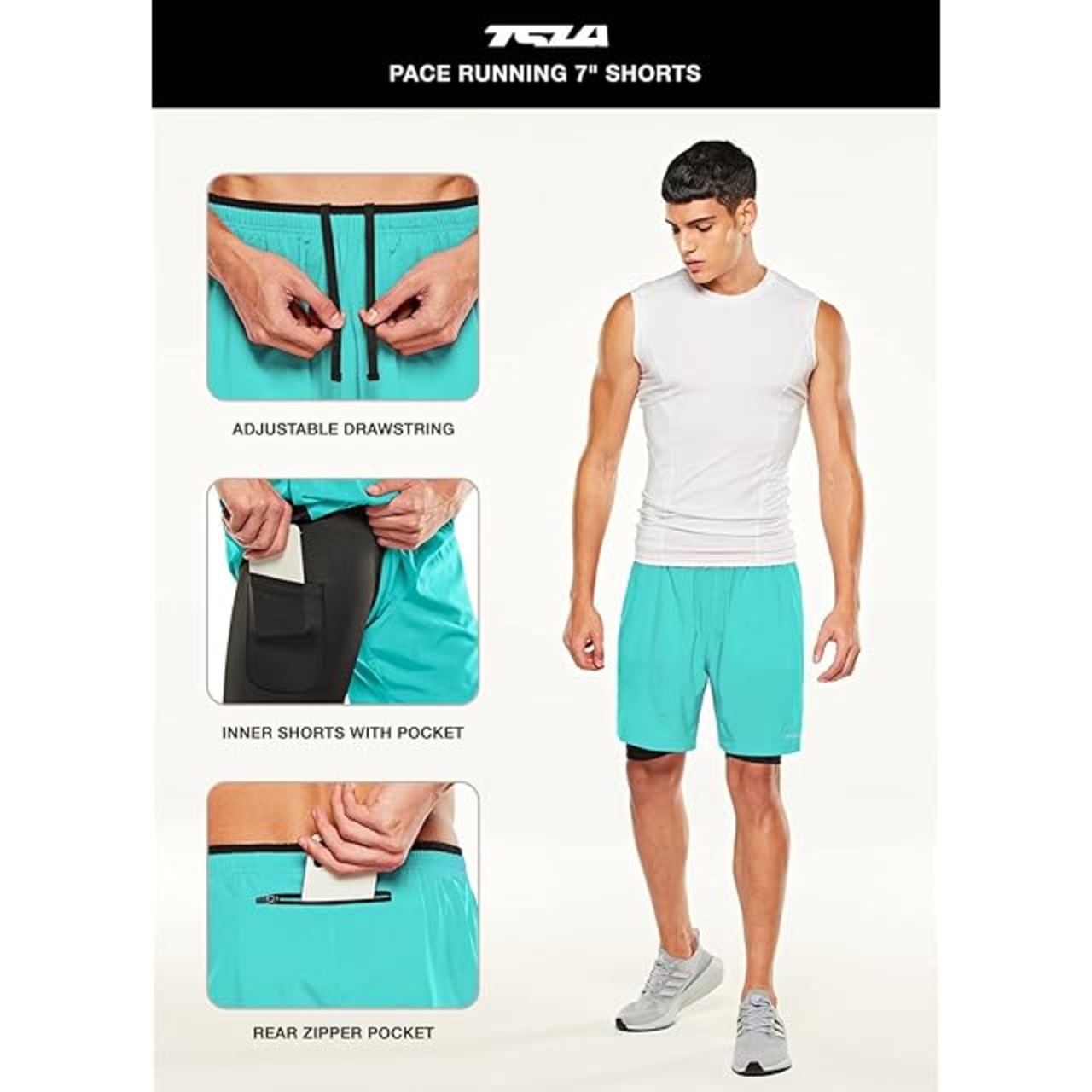 [テスラ] ハーフパンツ インナータイツ付き ドライ メッシュ スポーツ パンツ メンズ [UVカット・吸汗速乾] ショートパンツ ランニング フィットネス トレーニング 短パン 半ズボン ランニングパンツ MBH47-TEL_XL | BASE LINE