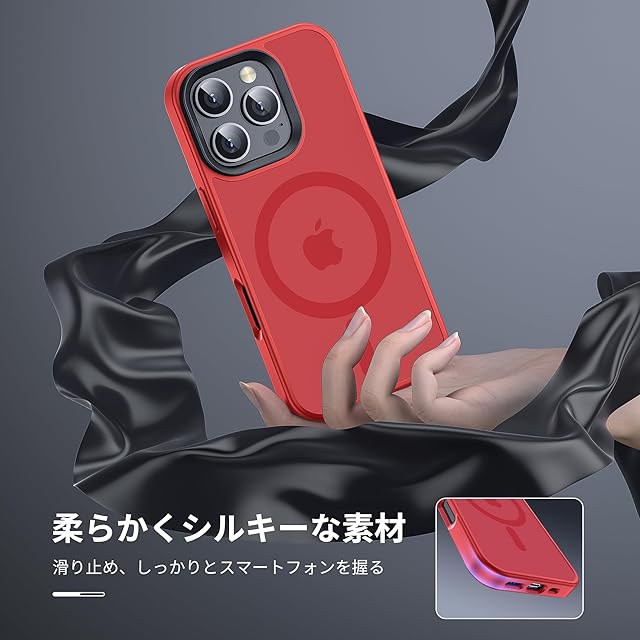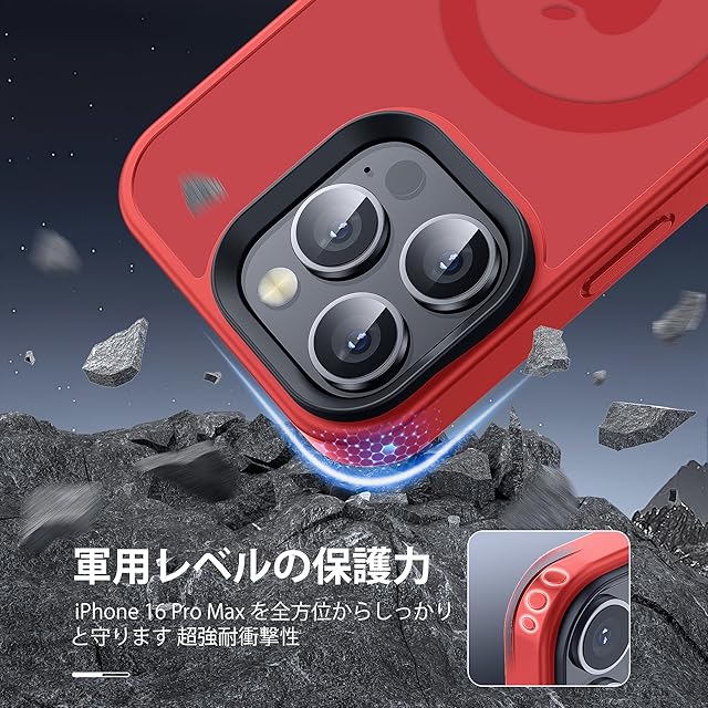 商品名:【米軍規格・MagSafe対応】Gtsoho iPhone 16 Pro Max ケース 用 ケース 透明 マグネット搭載 ワイヤレス充電 耐衝撃 耐久性 全面保護 黄ばみなし ストラップホール付き イフォン 16 Pro Max 用 カバー マグセーフ対応 レッド