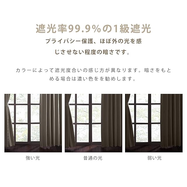 <p>↓↓↓お取扱い上のご注意の点<BR><BR>●入数:2枚遮光カーテン+フック14個+共布タッセル2枚<BR><BR>●機能:三重織りのテクノロジーを利用して85%~99.9%の光を妨げます(暗い色のカーテンの方が遮光効果より良いです)。窓外からの紫外線や強い日差しがよく遮られます。<BR><BR>●洗濯OK:洗濯の際はフックを外して洗濯機に入れて丸洗うことができます。<BR><BR>●組成:ポリエステル100%<BR><BR>●カーテン、スクリーンなどの端部分から光が漏れますのでご了承ください。<BR><BR>●ご注文確定の前にもう一度サイズと色のご確認をお願い致します。<BR><BR>●各商品写真に関してですが、お客様がご覧のモニターやお部屋の環境により、 イメージと異なる場合がございますので、予めご了承ください。