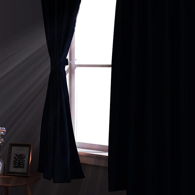 NICETOWN 遮光カーテン 断熱 間仕切り 防寒 防音 おしゃれ ネイビーブルー 2枚入り 幅100cm丈110cm 省エネ 昼夜目隠し 強い風に耐える 玄関 リビング用 マンション 部屋 | BASE LINE
