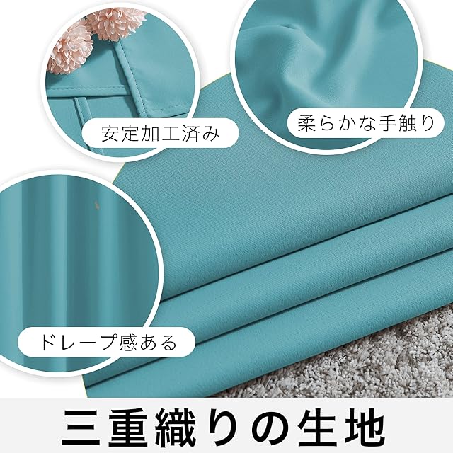 【多種機能】断熱・防寒・防音・家具保護。トリプル織りの遮光生地は、夏の暑さと冬の寒さから断熱することで、室温のバランスを取ります。 厚いドレープカーテンで効果的に騒音を減らせます。家具、床、アートワークを太陽の破壊から保護します。