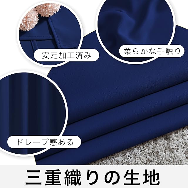 【多種機能】断熱・防寒・防音・家具保護。トリプル織りの遮光生地は、夏の暑さと冬の寒さから断熱することで、室温のバランスを取ります。 厚いドレープカーテンで効果的に騒音を減らせます。家具、床、アートワークを太陽の破壊から保護します。