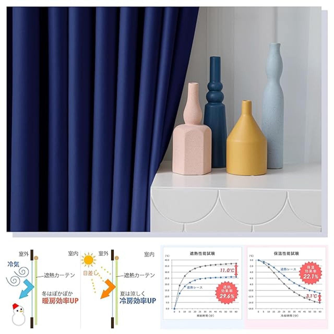 NICETOWN カーテン 遮光 1級 断熱 防寒 幅100cm丈110cm ロイヤルブルー 2枚セット 省エネ 冷暖房の効率アップ 防音 カフェーカーテン 出窓 腰窓 部屋 寝室 幼児園 喫茶店 | BASE LINE