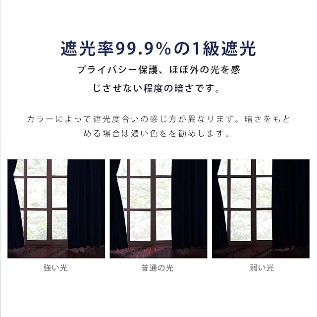 【1級遮光】光と紫外線の85%-99.9%を妨げます。 革新的なトリプルウィーブテクノロジーにより、日光を遮ったり、昼寝をしたり、テレビから太陽のまぶしさを抑えたりしたい人にぴったりのカーテンオプションです。※色が濃いほど、シェーディング効果が高くなります。
