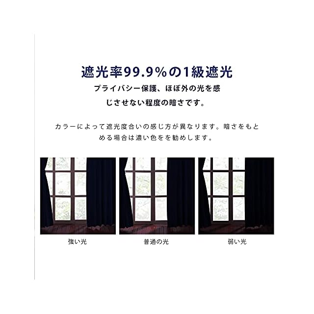 <p>↓↓↓お取扱い上のご注意の点<BR><BR>●入数:2枚遮光カーテン+フック14個+共布タッセル2枚<BR><BR>●機能:三重織りのテクノロジーを利用して85%~99.9%の光を妨げます(暗い色のカーテンの方が遮光効果より良いです)。窓外からの紫外線や強い日差しがよく遮られます。<BR><BR>●洗濯OK:洗濯の際はフックを外して洗濯機に入れて丸洗うことができます。<BR><BR>●組成:ポリエステル100%<BR><BR>●カーテン、スクリーンなどの端部分から光が漏れますのでご了承ください。<BR><BR>●ご注文確定の前にもう一度サイズと色のご確認をお願い致します。<BR><BR>●各商品写真に関してですが、お客様がご覧のモニターやお部屋の環境により、 イメージと異なる場合がございますので、予めご了承ください。