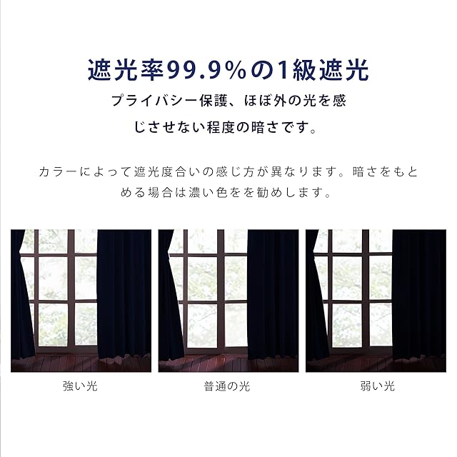 【1級遮光】光と紫外線の85%-99.9%を妨げます。革新的なトリプルウィーブテクノロジーにより、日光を遮ったり、昼寝をしたり、テレビから太陽のまぶしさを抑えたりしたい人にぴったりです。※色が濃いほど、シェーディング効果が高くなります。