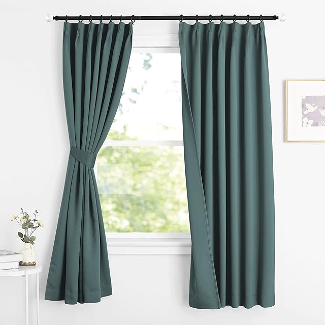 NICETOWN 遮光カーテン UVカット 断熱 防寒 1級 防音 省エネ 保温 厚手 カフェーカーテン ドレープ 形態記憶加工済み 無地 リビング用 2枚組 北極藍 幅100cm×丈178cm | BASE LINE