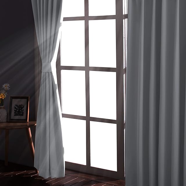 NICETOWN 遮光カーテン 小窓用 カフェーカーテン 遮音 断熱 厚地 インテリア 目隠し キッチン 子供ルーム 部屋 寝室 幅100cm丈60cm ライトグレー 2枚セット 真っ白 | BASE LINE