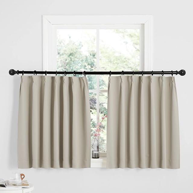 NICETOWN カーテン 1級遮光 2枚組 断熱 小窗 防寒 防音 省エネ 保温 厚手 ドレープカーテン UVカット 形態記憶加工済み 無地 出窓 腰窓 砂の色 幅100cm×丈110cm | BASE LINE
