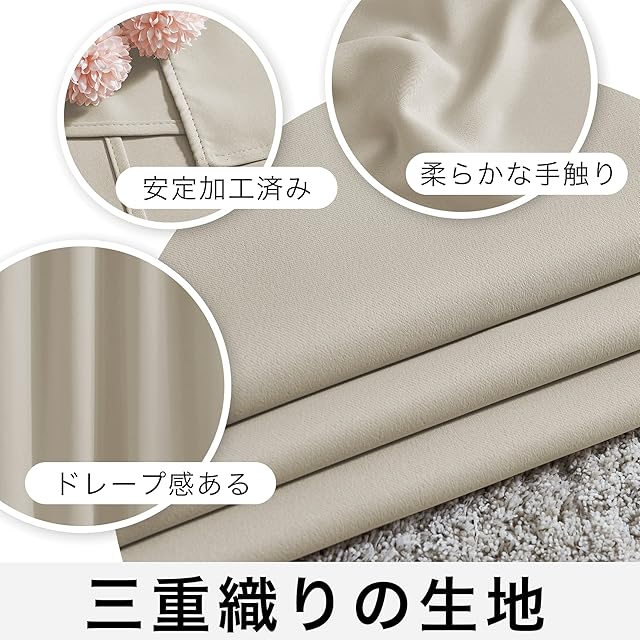 【多種機能】断熱・防寒・防音・家具保護。トリプル織りの遮光生地は、夏の暑さと冬の寒さから断熱することで、室温のバランスを取ります。厚いドレープカーテンで効果的に騒音を減らせます。家具、床、アートワークを太陽の破壊から保護します。