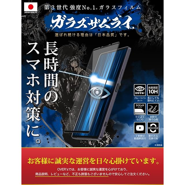 ガラスザムライ Xperia 1 マークⅣ 用 ガラスフィルム ブルーライトカット SOG06 用 SO-51C 用 全面保護 硬度 10H 強化ガラス 保護フィルム 米軍MIL規格 349-blue-3d | BASE LINE