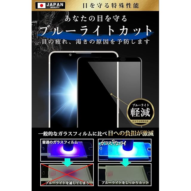 商品名:ガラスザムライ Xperia 1 Ⅵ / Ⅶ 用 ガラスフィルム SO-51E SO-51F 用 ガラスフィルム ブルーライトカット SOG13 用 全面保護 硬度 10H 強化ガラス 保護フィルム 米軍MIL規格 401-blue-3d/434-blue-3d