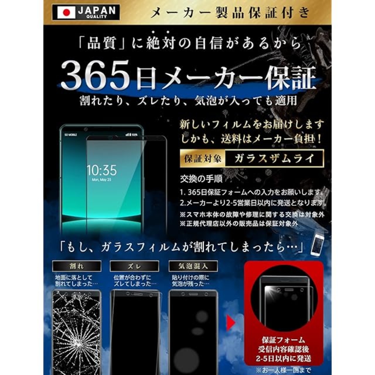 ガラスザムライ Xperia5 マークⅣ 用 ガラスフィルム ブルーライトカット SO-54C 用 SOG09 用 全面保護 硬度 10H 強化ガラス 保護フィルム 米軍MIL規格 357-blue-3d | BASE LINE