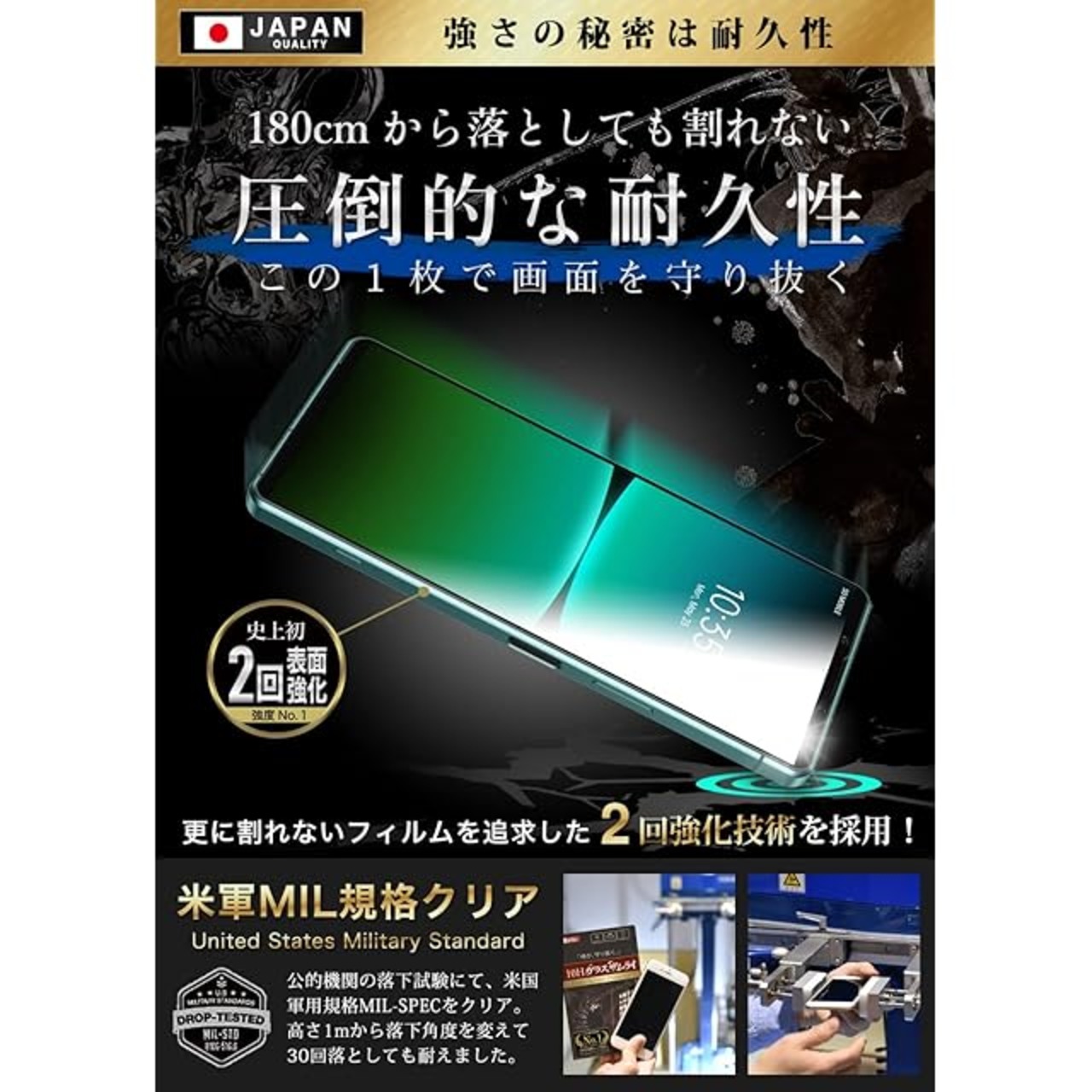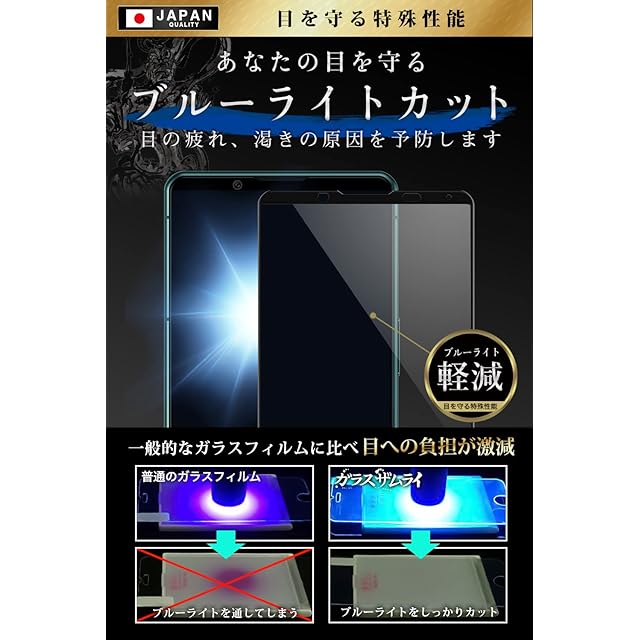 商品名:ガラスザムライ Xperia5 マークⅣ 用 ガラスフィルム ブルーライトカット SO-54C 用 SOG09 用 全面保護 硬度 10H 強化ガラス 保護フィルム 米軍MIL規格 357-blue-3d