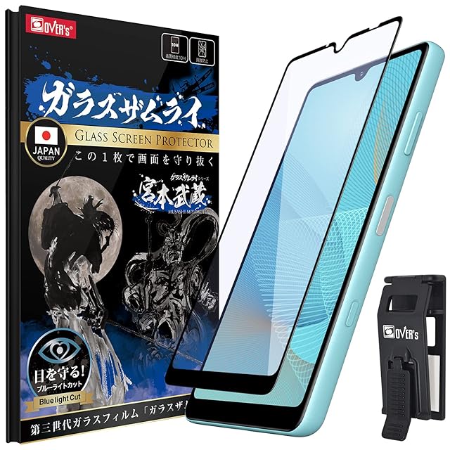 商品名:ガラスザムライ Xperia AceⅡ 用 ガラスフィルム SO-41B 用 ブルーライトカット 全面保護 硬度 10H 強化ガラス 保護フィルム 米軍MIL規格 312-blue-2.5d-bk