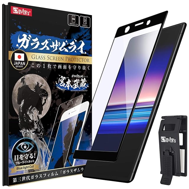 ガラスザムライ XperiaACE 用 ガラスフィルム SO-02L 用 ブルーライトカット 全面保護 硬度 10H 強化ガラス 保護フィルム 米軍MIL規格 219-blue-3d-bk | BASE LINE
