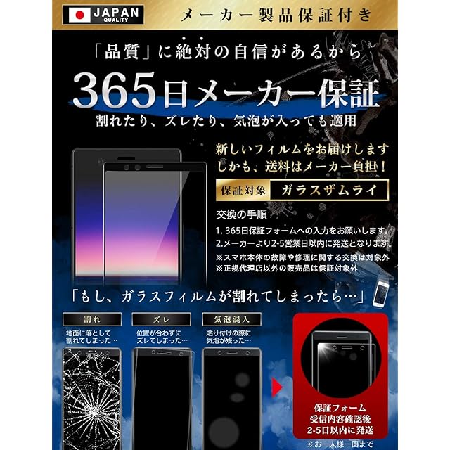 全面保護は、スマホ前面の情報表示部分およびその周囲の一部を表すもので、前面全てを指すものではありません。【 こ の 1 枚 で 守 り 抜 く ~ 第 3 世 代 ガ ラ ス フ ィ ル ム 】 ジャパンクオリティ ~ ガラスザムライが選ばれ続ける理由は「日本品質」です。 柔軟性と強度を兼ね揃えた新世代の高品質ガラスフィルム「より割れない」「より浮かない」「角割れしない」 “ 第3世代 ガラスフィルム “ 登場。【 ガ ラ ス ザ ム ラ イ 】サムライには武士道の「義と勇」が込められています。 .