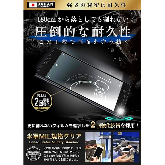 ガラスザムライ Xperia XZ Premium 用 ガラスフィルム SO-04J 用 ブルーライトカット 全面保護 硬度 10H 強化ガラス 保護フィルム 米軍MIL規格 130-blue-3d-bk | BASE LINE