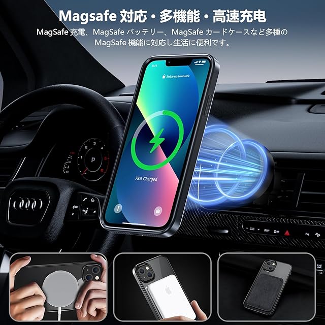 【MagSafe対応&より高速·簡単に充電】ケース内部には2024年に新開発された強力なマグネットが搭載されており、吸着力と安定性が向上し、MagSafe充電対応で差し込みのいらない超簡単・超高速充電を実現しています。また、MagSafe対応アクセサリーもいろいろ!MagSafe充電器、MagSafeバッテリー、MagSafe車載ホルダー、MagSafeリングなどのMagSafeに対応した iPhone13 ケース いphone14 ケース です。いつでもどこでも使いやすいMagSafeデザインです。