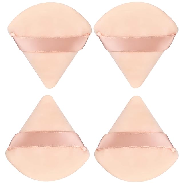 YOYOSOFT パウダーパフ 三角パフ 4個入 細かい部分に対応 幅6.5cm×長さ7cm フロッキー素材 フェイスパウダーパフ 使い捨て 大容量 パフ メイク 個包装 (オレンジ) | BASE LINE